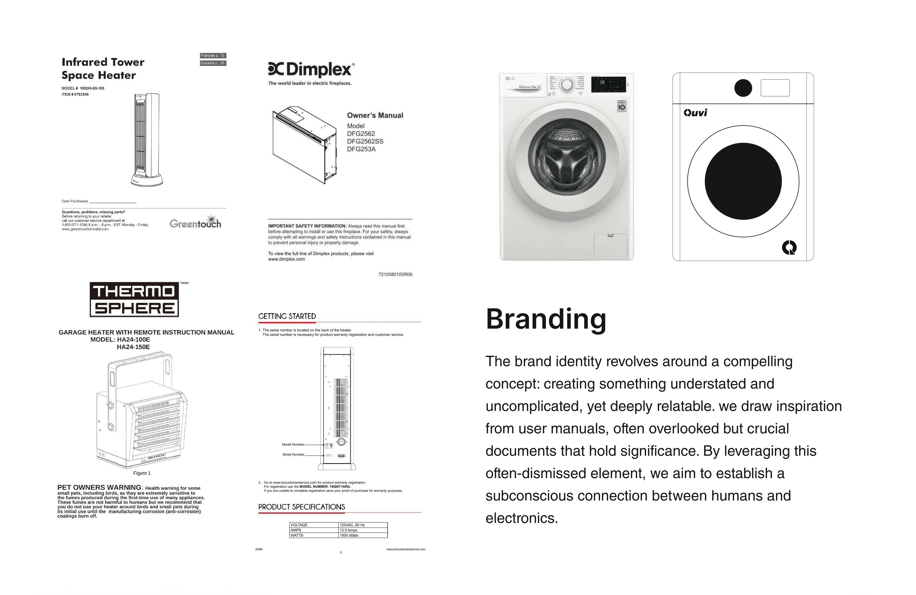 The brand identity revolves around a compelling concept: creating something understated and uncomplicated, yet deeply relatable. we draw inspiration from user manuals, often overlooked but crucial documents that hold significance. By leveraging this often-dismissed element, we aim to establish a subconscious connection between humans and electronics.